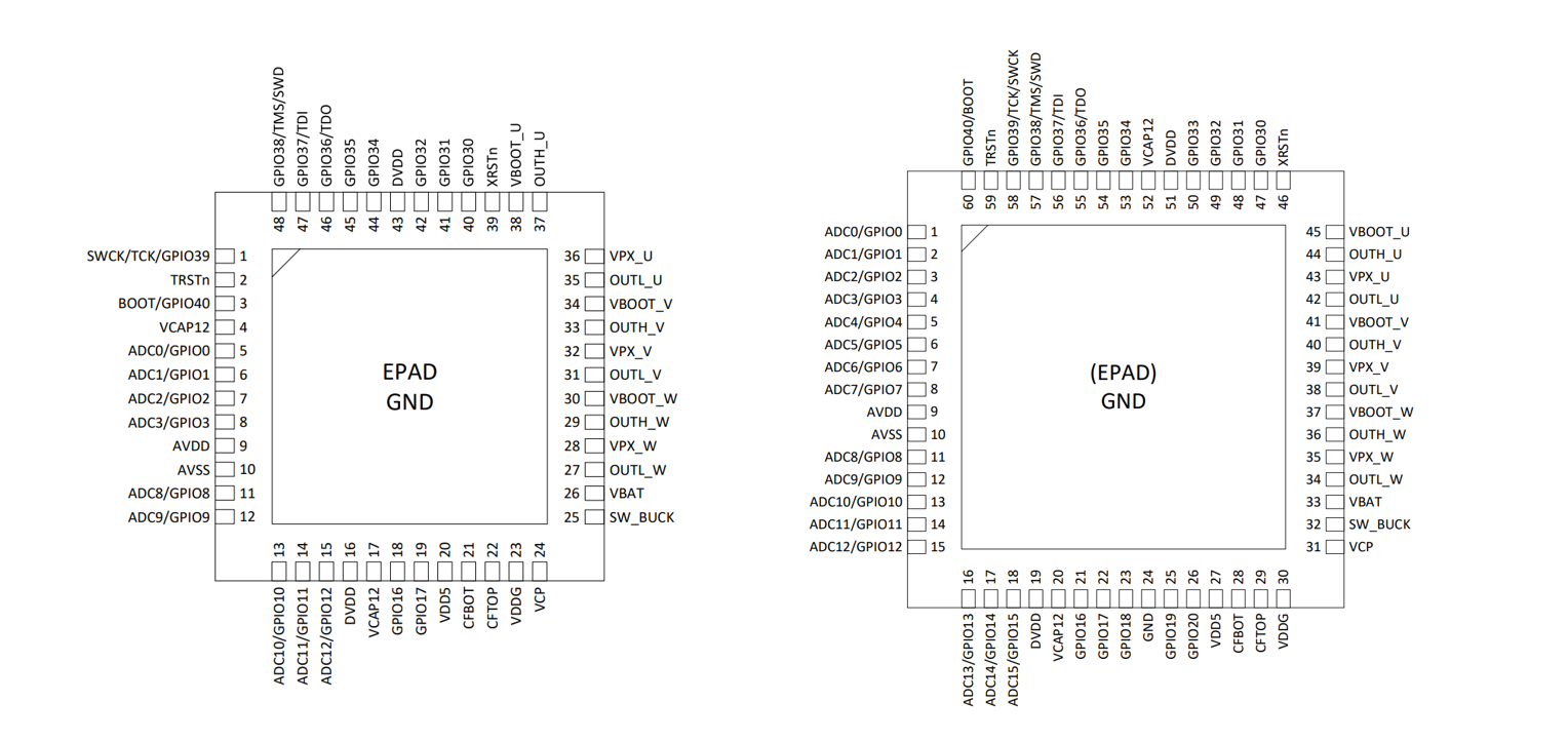 图4 旋智科技SPD1148芯片QFN48、QFN60引脚分布图