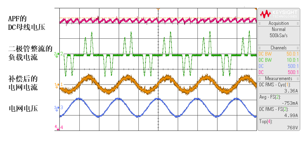 本设计中APF补偿 380V 3kW变频器进网电流的实验波形如下