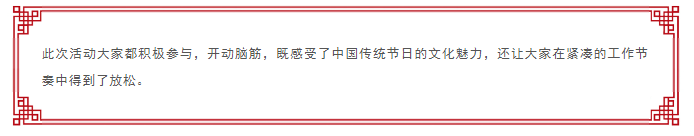 为了弘扬节日文化,营造节日氛围,公司特此举办“猜灯谜闹元宵”的活动。